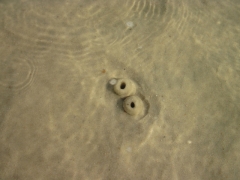 The principal evidence of their presence are the inch-high turrets, with a three-quarter-inch opening to their system of tunnels into the substrate. Where one is found, others are always present existing as colonies for 100 meters or so parallel to the beach front, and extending out from the low tide mark for a few dozen meters.