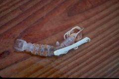 One such example is the beach ghost shrimp, Callichirus islagrande, a burrowing animal that seldom, if ever, exits its tunnels willingly. This species is endemic to the northern Gulf of Mexico and inhabits the high energy foreshore of barrier islands and similar stretches of quartzite sandy beaches.