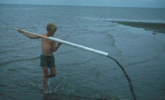 Beach ghost shrimp are colonial and may Patrick Thomas using a yabby pump to