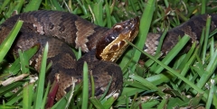 Cottonmouths account for the largest number of venomous snake bites in Louisiana due to their abundance and proximity to sportsman and people living in wetlands. Though only rarely fatal with medical treatment, cottonmouth bites are particularly nasty in that compartmentalization (functionally similar to gangrene) may follow. Always go to a hospital when bitten by a venomous or even possibly venomous snake.