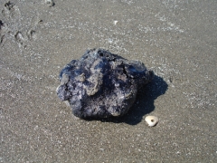 A tar ball found at Grand Isle State Park, Two oil patties found on Elmer's Island