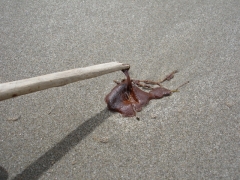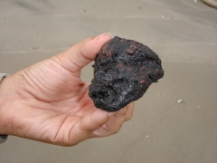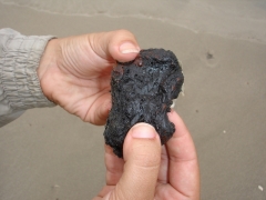 A tar ball from Elmer's Island near Grand The same tar ball being pulled apart by